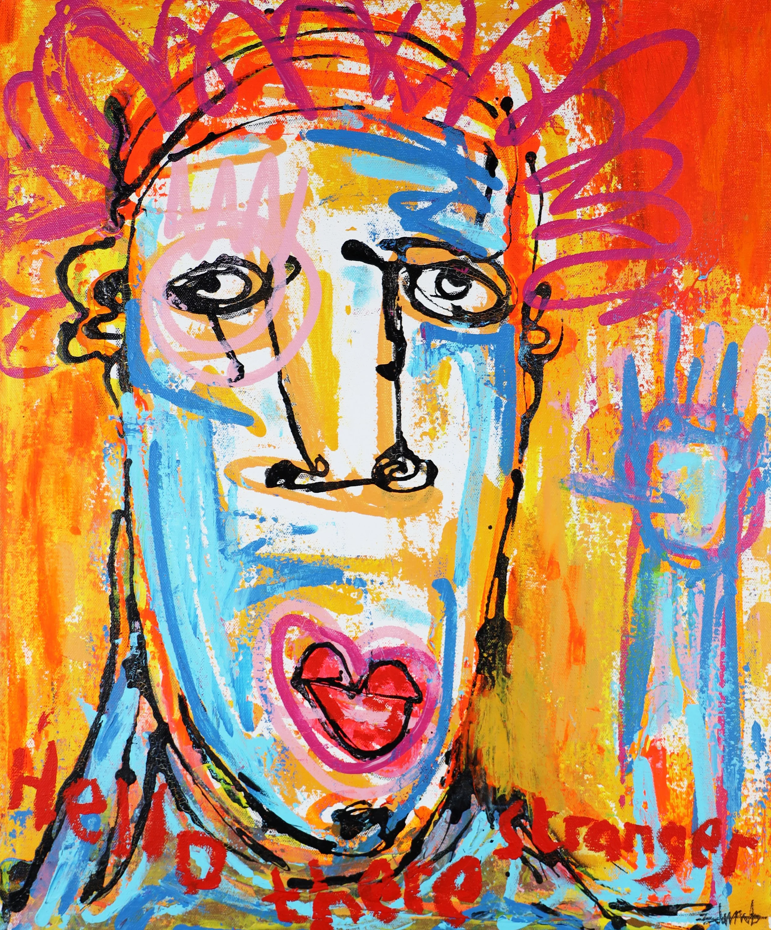 Hi friend, 50.8x76.2cm, Acrylic, permanent marker and wall paint, £190.JPG